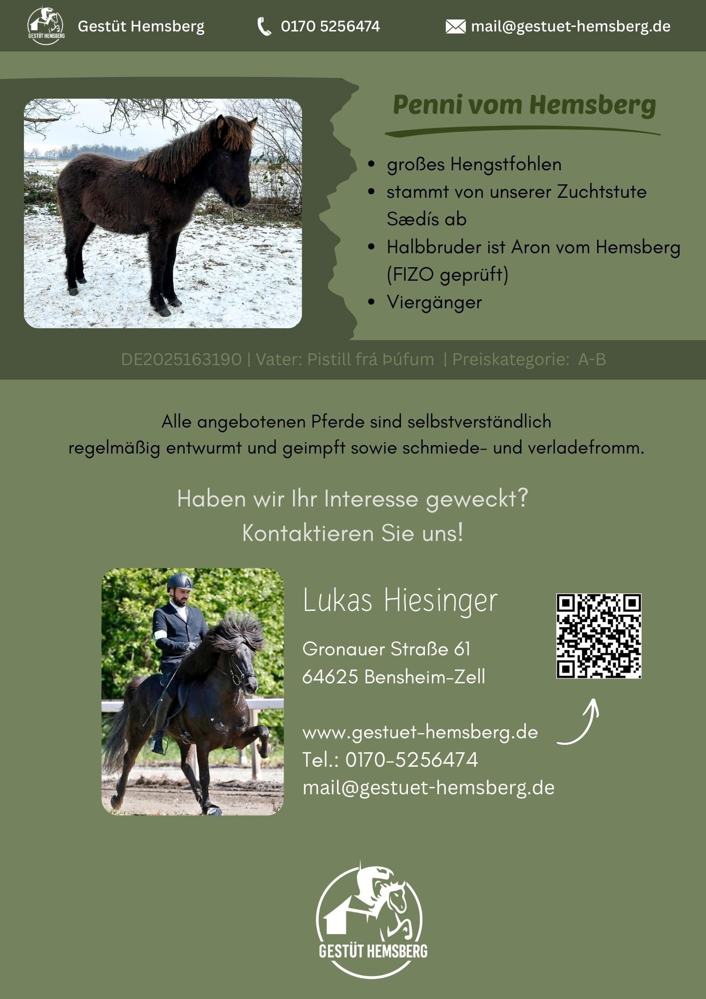Lukas Hiesinger steht Ihnen gerne unter 0170-5256474 zur Verfügung.